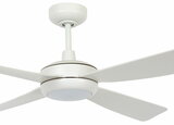 Deze plafondventilator met LED-verlichting is bij uitstek geschikt voor middelgrote ruimtes. Met een totale spanwijdte van 107 centimeter weet deze plafondventilator maar liefst 135 m3 lucht per minuut te verplaatsen. Vier ventilatorbladen zorgen voor een uiterst stabiele rotatie zonder schommelingen of geluidvorming. Deze ventilator kan ook gebruikt worden tijdens koudere maanden dankzij de aanwezigheid van een winterstand. In de winterstand wordt lucht omhoog geblazen wat de stookkosten tot 10 procent omlaag kan brengen. De zomer- en winterstand is te wijzigen op de behuizing van de plafondventilator. In de ventilator zit verlichting ingebouwd, ideaal als u de ventilator op een plek hangt waar eerst een lamp hing. Zo slaat u twee vliegen in één klap. Bij de ventilator wordt een 12 Watt LED-lamp geleverd. De verlichting is 3000 Kelvin, 1700lm en dimbaar in drie standen. Bij de ventilator wordt ook een afdekplaatje geleverd, als je de verlichting niet wilt gebruiken.
