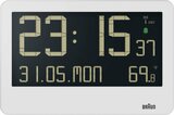 Digitale radiogestuurde wandklok van Braun met temperatuurweergave
