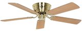 Deze klassieke plafondventilator is het meest geschikt voor een woonkamer. De ventilatorbladen zijn omkeerbaar - zo heeft u de keuze uit een twee verschillende kleuren: gebruikt eikenhout en beuken. Met een totale spanwijdte van 132 centimeter heeft de ventilator een diameter geschikt voor ruimtes van 12 tot 25 vierkante meter. De behuizing van de ventilator heeft klassiek ontwerp en is van gepolijst messing. Deze ventilator kan ook gebruikt worden tijdens koudere maanden dankzij de aanwezigheid van een winterstand. De winterstand zorgt voor een omgekeerde luchtcirculatie wat voor een gelijkmatige verspreiding van warmte en temperatuur in uw kamer zorgt. De winterstand kan uw stookkosten tot 10 procent verlagen. De zomer- en winterstand is te wijzigen op de behuizing van de plafondventilator.