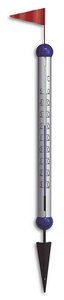 Deze tuinthermometer meet eenvoudig de buitentemperatuur in uw tuin of balkon. Dankzij de voet kunt u de thermometer gemakkelijk in de grond of in een plantenbak steken. De thermometer is gemaakt van aluminium en kan het gehele jaar buiten staan. Het meetbereik van de thermometer is -30 tot +50 graden Celsius. Dankzij de forse lengte (123 cm) is de thermometer eenvoudig af te lezen.
