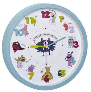 Leuke kinderklok van TFA met dieren bij ieder getal. Deze analoge wandklok van TFA is geschikt voor in een kinderkamer door zijn kleurrijke uiterlijk. Zo kun je speels het klokkijken leren. Voorzien van verschillend gekleurde wijzers. Deze TFA is doormiddel van een ophangoog te bevestigen. De klok heeft een kunststof frame en wordt afgesloten door een glazen plaat. Deze TFA is ook voorzien van een volledig stil uurwerk. Deze wandklok werkt op één AA batterij.