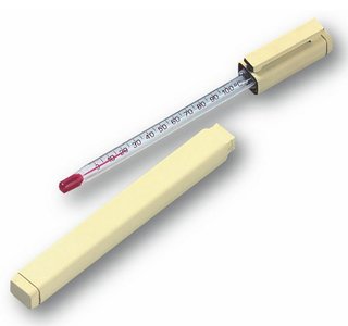 Duidelijke thermometer voor het meten van de theetemperatuur. De thermometer heeft een bereik van 0 tot 100 graden en zit in een handige huls.